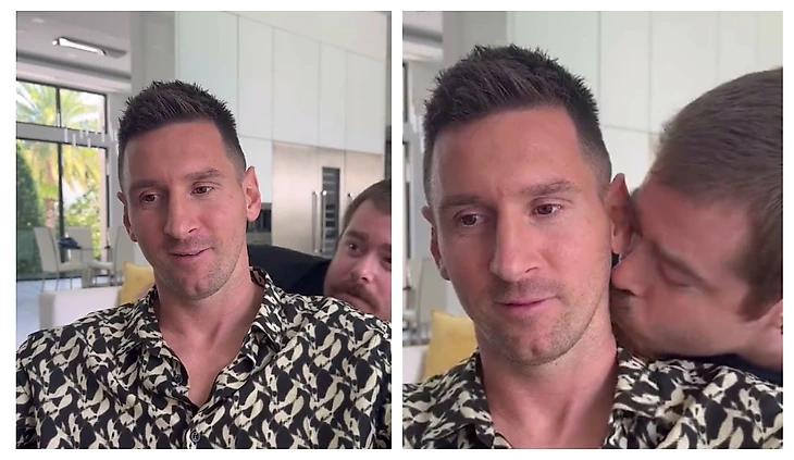 Упс! Во время интервью американскому журналисту к Месси подкрался мужчина и поцеловал его в шею😱😱😱