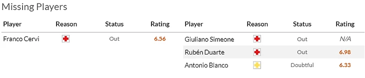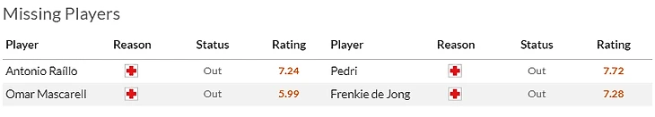 У Хетафе принципиальных матчей на горизонте не видно, да и сами они - ребята беспринципные, так что из потерь у подмадридцев только давно осевшие в лазарете Унал(7,5) и Милья(6).