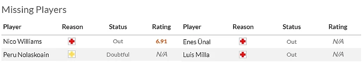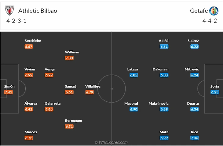 На что обратить внимание: На баскское дерби. Сразу после мидуика у атлетов принципиальный баттл с Сосьедадом, так что на Хетафе могут выйти те кто обычно получают ограниченное игровое время. Кроме того, мимо заявки пролетают травмированные Нико Уильямс(7,5) и Де Галаррета(6).