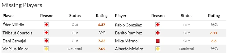 На что обратить внимание: На возвращение Винисиуса(10). По идее оно было запланировано на прошлый тур но бразильца в последний момент вычеркнули из заявки из-за проблем с желудком. Теперь все прошло и вингер снова готов давать жизни мадридской атаке. Кроме того наконец-то вернулся в общую группу Дани Карвахаль(6,5).