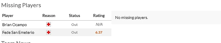 Ну а пока мидуик немного анестезии могут себе позволить травмированные Барриос(6) с Лемаром(7). Также если доктора индейцев не найдут подходящих рецептов в том же баре могут оказаться не до конца здоровые Сенюджю(6), Де Поль(7,5) и Корреа(8).