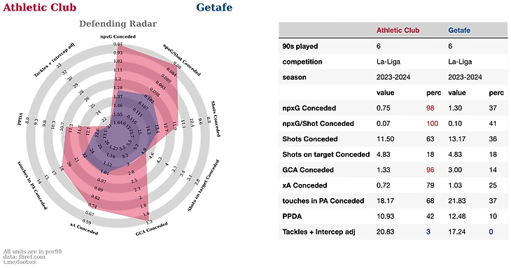 По суммарному xG, набираемому соперниками, баски также имеют лучший показатель в чемпионате испании - только 0.75 xG за игру. (кроме Атлетико меньше 1 ожидаемого гола за игру получают только Атлетико, Валенсия и Лас Пальмас)
