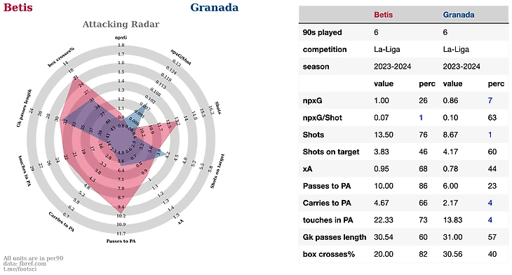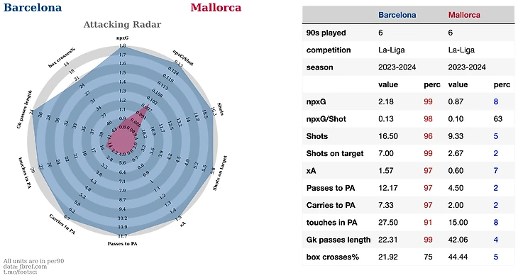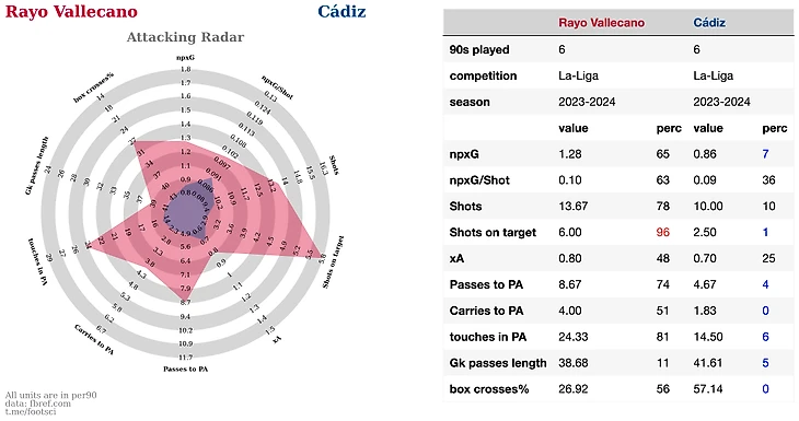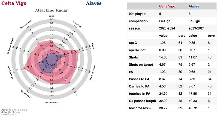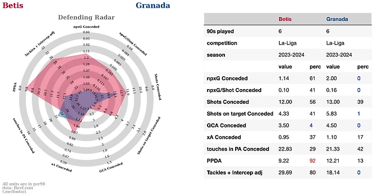 Лас Пальмас на втором месте по в лиге по допускаемому xG, плюс по метрике GCA они входят в топ лиги. Это метрика давольно спорная с точки зрения свой наглядности. В нее включены последние 2 атакующих голевых действия перед забитым голом.