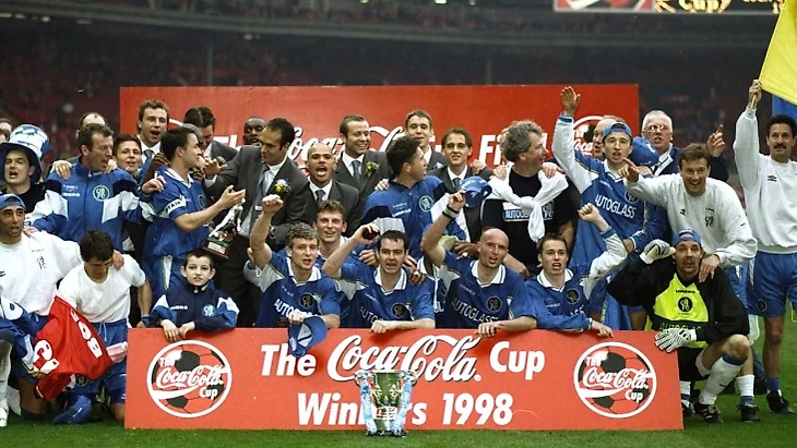 🏆 Дальше «Челси» решил 26 лет не показываться в финалах КЛ. Следующий финальный матч датирован 1998 годом. Здесь уже будут более знакомые для нас фамилии. В финале против «Мидлсбро» на «Уэмбли» основное время матча закончилось 0:0. На 95-ой минуте забил Фрэнк Синклер, а на 107-ой счёт 2:0 сделал Роберто Ди Маттео. Команду образца 1998 года мы все прекрасно помним – тренер Виалли, на воротах Эд де Гуй, в защите Лебёф, Ле Со, Петреску, впереди Дзола, Ди Маттео, Фло...