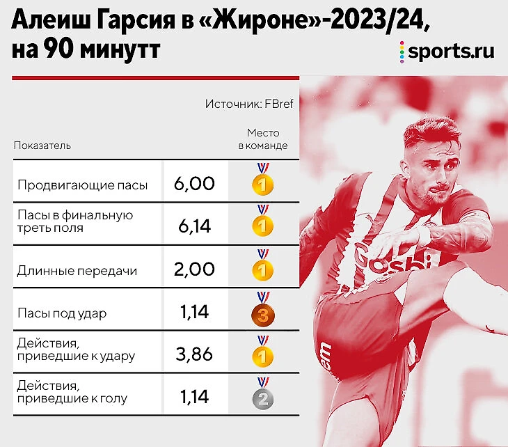 Алеиш Гарсия всегда был полузащитником с крутым диапазоном и уровнем паса. В его случае больше всего интригует новая роль. В прошлом году самым оборонительным в полузащите «Жироны» был Ориоль Ромеу, а Гарсия играл повыше. Отдав Ромеу в «Барсу», Мичел просто рискнул, доверив место Алеишу.