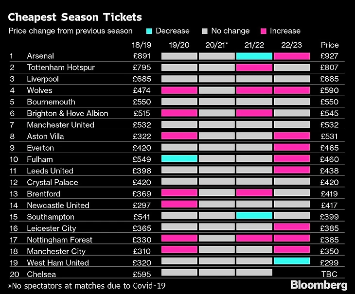 Самый дешевый билет на чемпиона АПЛ - «МанСити» стоит столько же, как стоячие боковые места на самую худшую до недавнего времени команду МЛС - «Майами». «МанЮнайтед» так вообще пять сезонов не менял стоимость билетов.