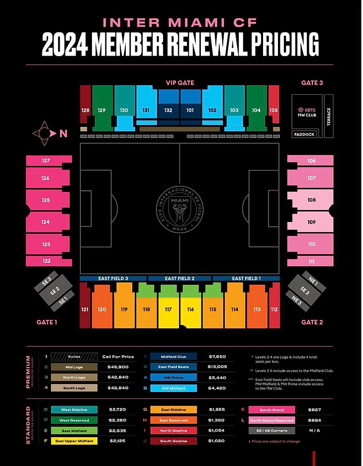 Выше приведены цены, которые клуб Бэкхема предлагал на старте продаж в конце прошлого года. Конечно же с оговоркой, что итоговая цена может поменяться, ведь в МЛС так любят динамическое ценообразование.