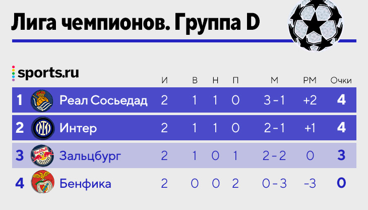 «Сосьедад» и «Интер» вместе лидируют, команде Захаряна дальше играть два матча с «Бенфикой».