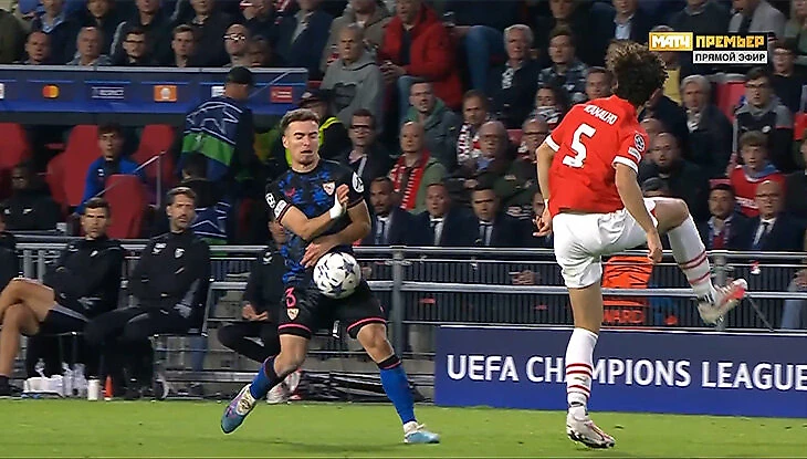 ПСВ и «Севилья» выдали концерт во втором тайме. Началось с судейского соло.