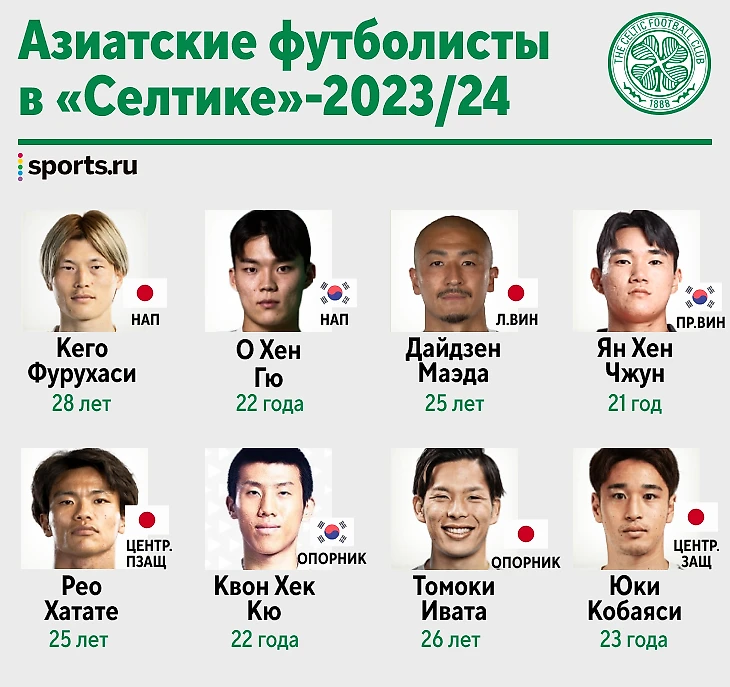 С уходом Постекоглу азиатская специализация «Селтика» пока никуда не делась. В топ-5 по игровому времени в команде сейчас два японца, а два последних корейца переходили уже при новом тренере.