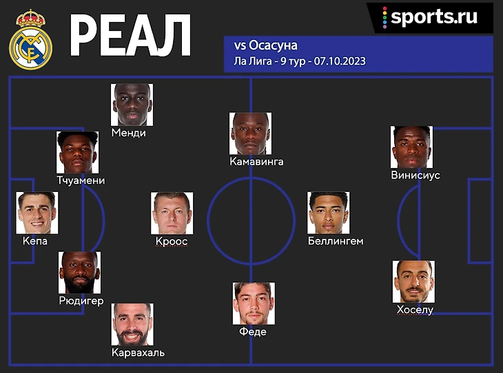Пока нет Алабы и травмирован Милитао, Кроос наш единственный игрок, кто может контролировать темп и направления атак в билдапе, поэтому его выход в старте не вызывает сомнений.