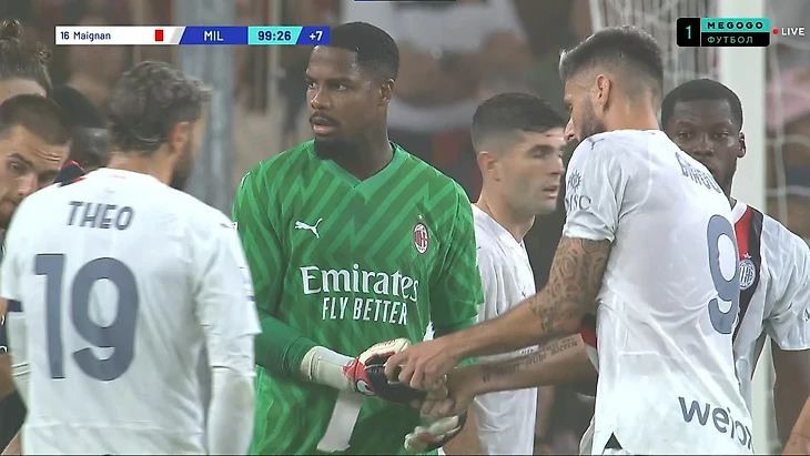 🔴 На 99-й вратарь «Милана» Майк Меньян получил прямую красную: вылетел на перехват и коленом пробил в игрока «Дженоа». Замен у гостей не осталось, в раму встал Оливье Жиру!