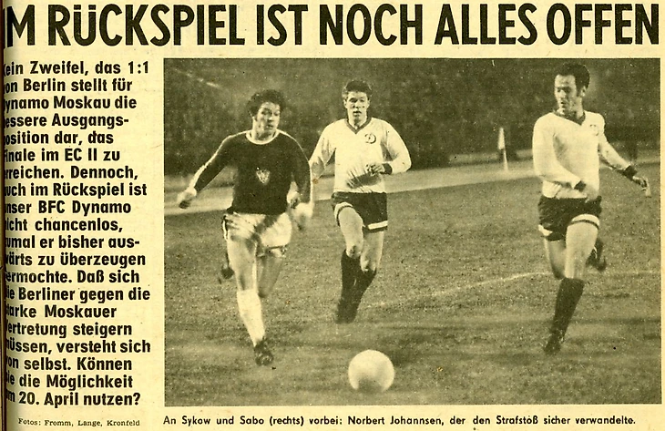Еженедельник «ФУТБОЛ-ХОККЕЙ» в своей статье от 2 апреля 1972 года представил берлинское «Динамо», как соперника московских динамовцев по полуфиналу Кубка кубков: