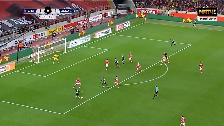 На 39-й «Спартак» ответил своим шедевром – Квинси Промес постоял с мячом на углу штрафной, подработал под правую и крутанул из-под защитника в дальний. И попал!