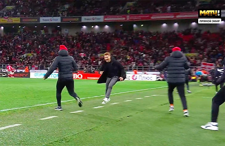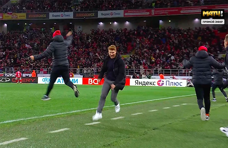 Ииии… Хесус Медина повисает над Ильей Агаповым и головой замыкает навес в ворота. Спасение!