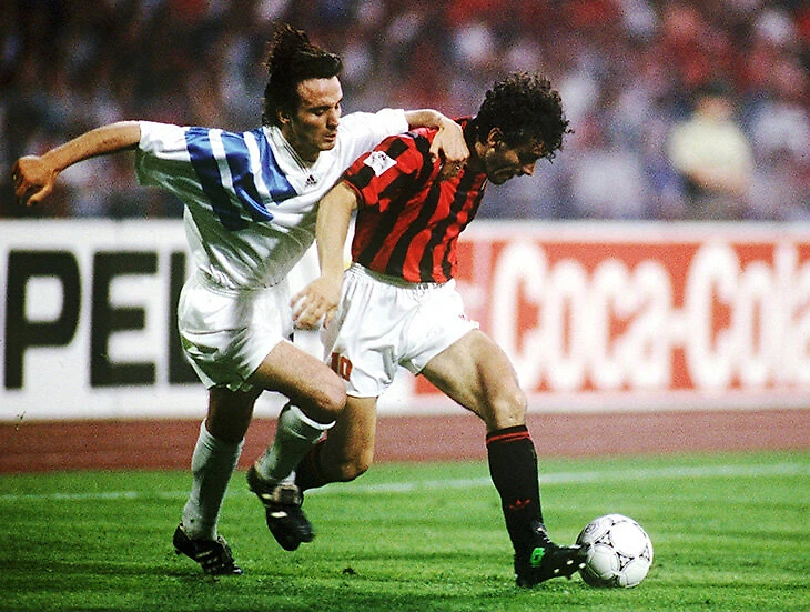 🇮🇹 Мощный «Милан» продал перед сезоном рекордные для Италии 70 500 абонементов и добавил к фантастическому трио Райкард-Гуллит-Ван Бастен еще и Жан-Пьера Папена, а в квалификации не пропустил ни гола – 7:0 по сумме двух встреч над «Олимпией, 5:0 – над «Слованом». Свободный проход.