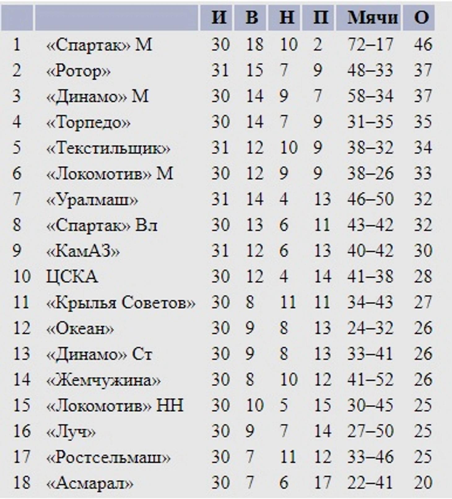 Конкурентов у «Спартака» не было: в итоге команда Олега Романцева опередила ставший вторым «Ротор» на 11 очков, а ведь это время, когда за победу начисляли еще два балла!