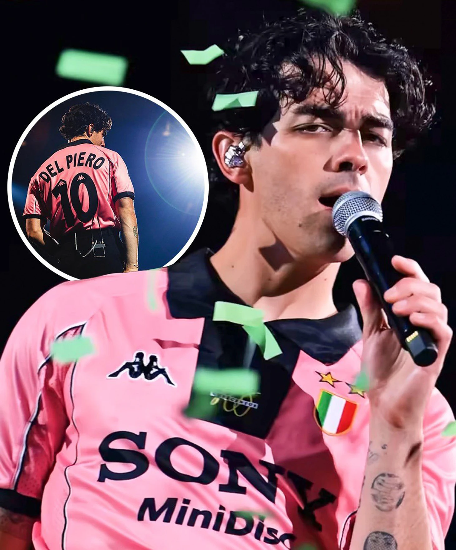 Джо Джонас из американской группы Jonas Brothers в футболке «Ювентуса» сезона 97/98 с фамилией Дель Пьеро на спине