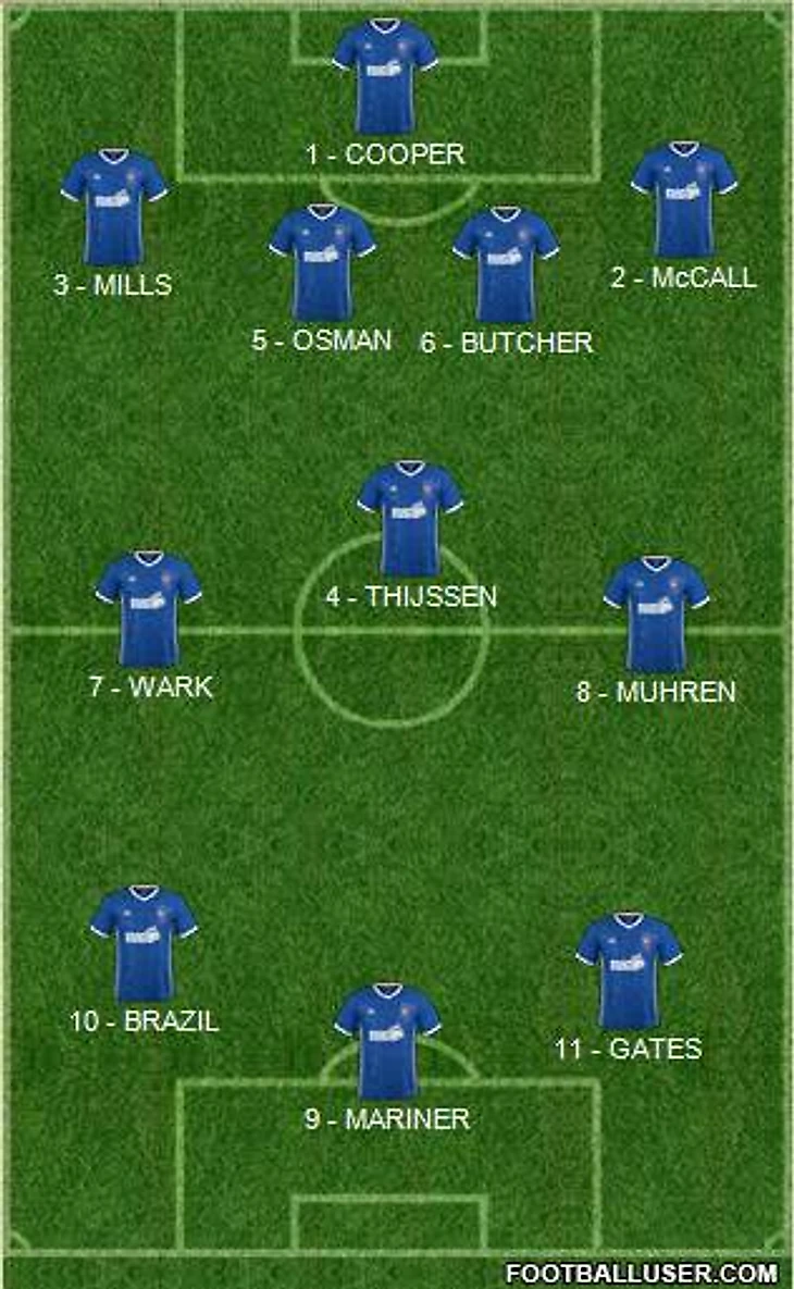 В атаке, когда Уорк не стремился забить, Эрик Гейтс, Пол Маринер и Алан Брэзил обеспечивали достаточную огневую мощь. Гейтс играл за Ипсвич всю свою карьеру после своего дебюта в 1973 году, когда ему было всего 18 лет. Его лучший момент наступил, когда он забил оба гола в победном матче против Барселоны (2-1) на Портман Роуд в четвертьфинале Кубка обладателей кубков 1979 года.
