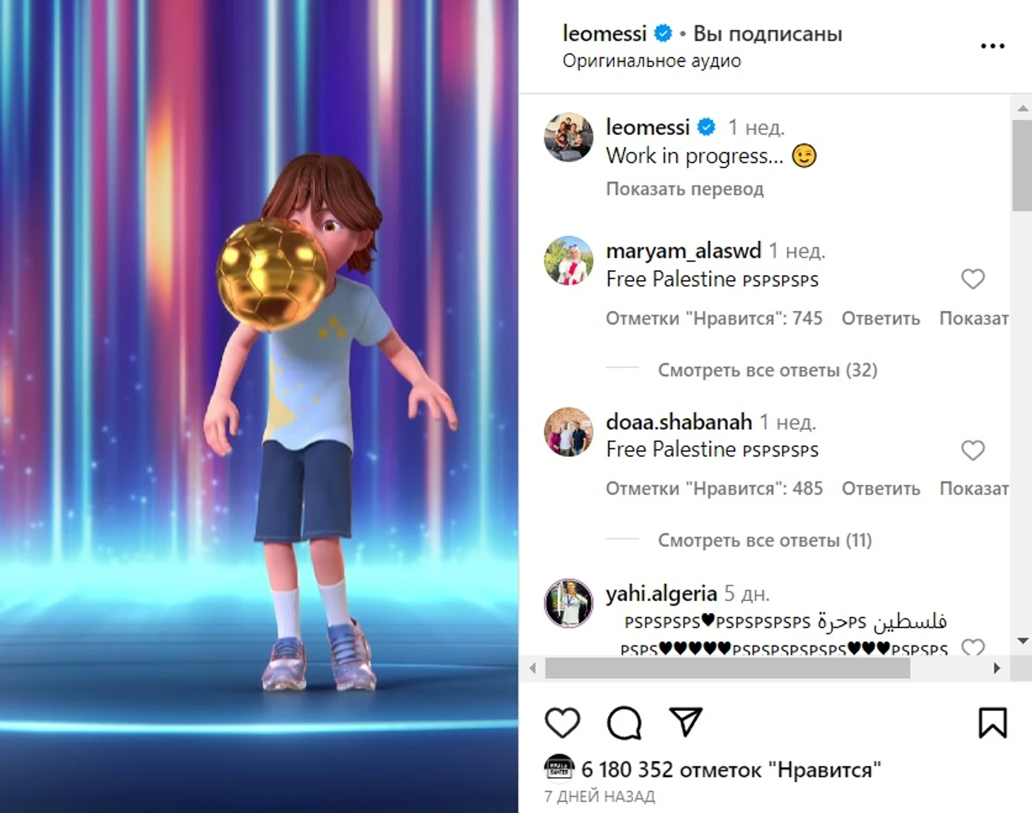 В тот же день в инстаграме Месси появилось видео с анонсом мультсериала «Messi and the Giants», который выпускает Sony. И оно тоже было подписано словами «Work in progress…».