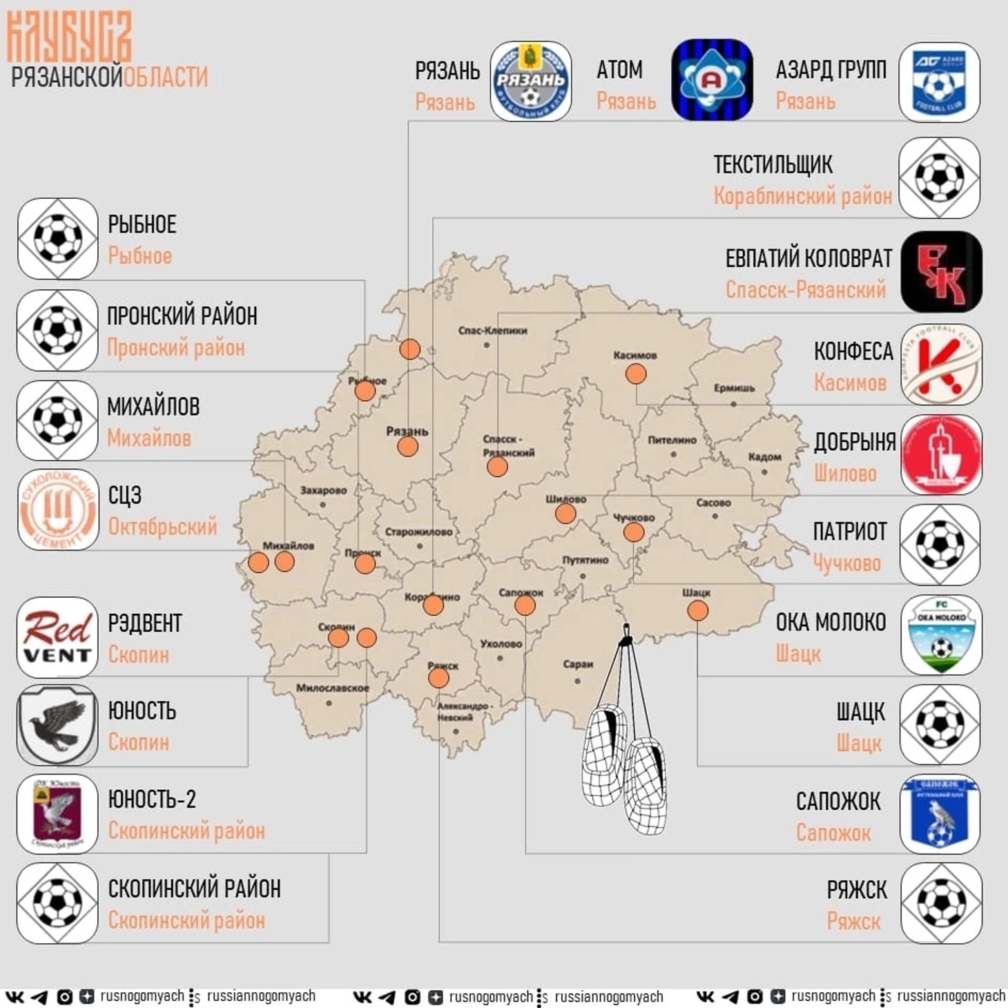 Конфеса Касимов, СЦЗ Октябрьский, Пронский район, ФК Ряжск, Атом Рязань, Рэдвент Скопин (возможно переименовались из ТД Русь), Патриот Чучково и Ока Молоко Шацк.
