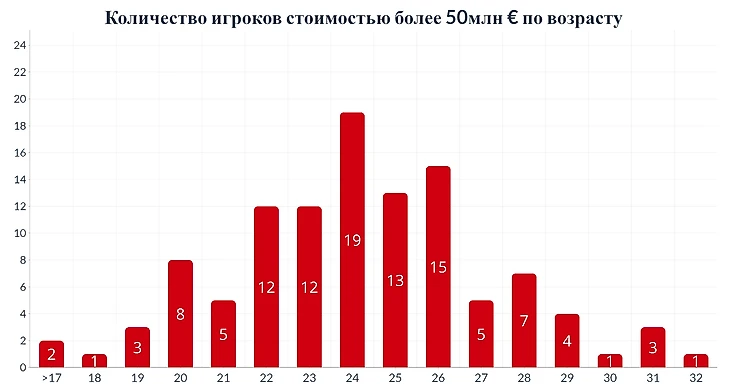Существует мнение, что футболисты доходят до «пика формы» в районе 27-28 лет, однако данный график опровергает это. Согласно ему «пик» приходится на 24 года.