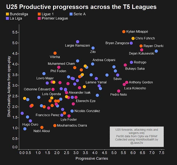 Ни один из них не существует в вакууме от остальных и поэтому нужно рассматривать ситуацию с точки зрения интересов всей команды, а также учитывать особенности новой системы Анчелотти. Родриго полезнее Хоселу буквально во всем, кроме забитых голов. Любые метрики игры с мячом у него на топовом уровне и Гоэс сейчас один из лучших игроков Европы по количеству созданных моментов, приведших к удару и по количеству рывков с мячом вперед.