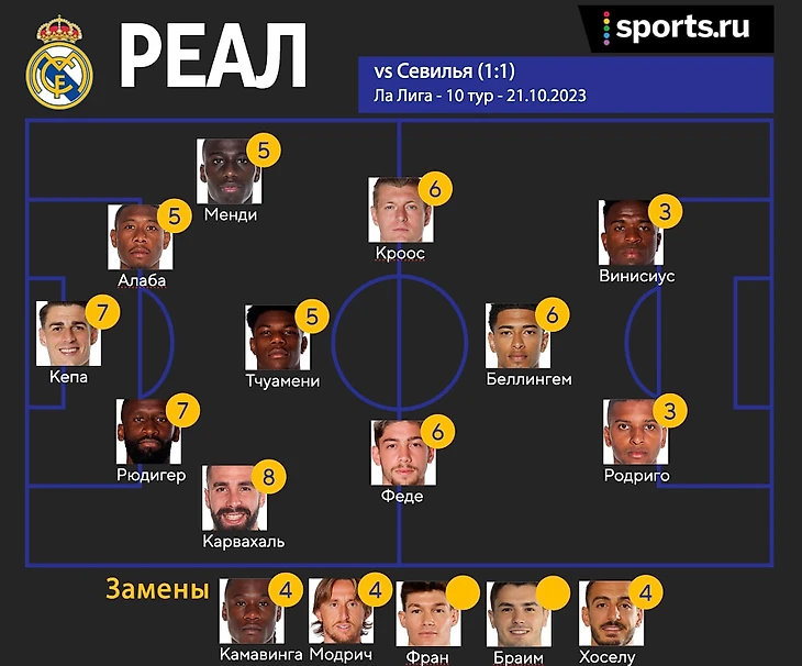 В большинстве случаев жалобы на арбитров слишком приукрашены, но конкретно в матче с «Севильей» невозможно игнорировать фактор плохой работы Бенгоэчеа. Он отменил гол Беллингема, хотя фола на Окампосе зафиксировано не было (и не было и удара по голове, из-за чего можно было бы остановить матч исходя из регламента). Он не поставил 100-й пенальти на Винисиусе за толчок в спину от Хесуса Наваса. Это два эпизода, которые напрямую повлияли на результат встречи.
