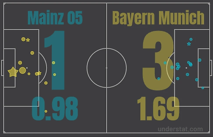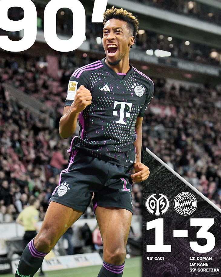«Бавария» без особых сложностей расправилась с «Майнцем», нанеся команде Бо Свенссона уже шестое поражение в текущем сезоне. Ударный дебют от Комана и Кейна позволил одним расслабиться, а других побудил на активные действия. «Майнц» проявил стойкость и заставил мюнхенцев поработать ещё немного. Каси до перерыва использовал ещё одну позиционную ошибку Лаймера и уложил мяч в верхний угол, сократив разрыв. Был в матче ещё и довольно спорный момент с фолом де Лигта на красную карточку, но судья не решился удалять нидерландца, который формально был последним защитником. Во втором тайме «Бавария» откровенно не играла сама, и не давала делать это сопернику. Мусиала классной работой в прессинге обеспечил гостям редкий высокий возврат, и тут же ассистировал Горецке под его пушку в дальний угол. Полчаса до окончания, перевес снова в два мяча. На этот раз «Майнц» был окончательно повержен, и баварцы легко довели дело до финального свистка, а вместе с ним и до очередной победы.