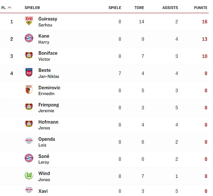 Гирасси забил свой 14-й гол в сезоне. Ни один другой игрок в истории Бундеслиги не забивал так часто в первые восемь игровых дней!
