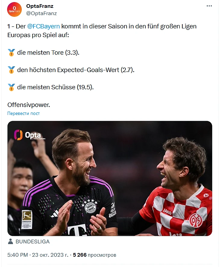 «Бавария» в шестой раз в этом сезоне Бундеслиги забила в первые 15 минут матча – лучший показатель чемпионата.