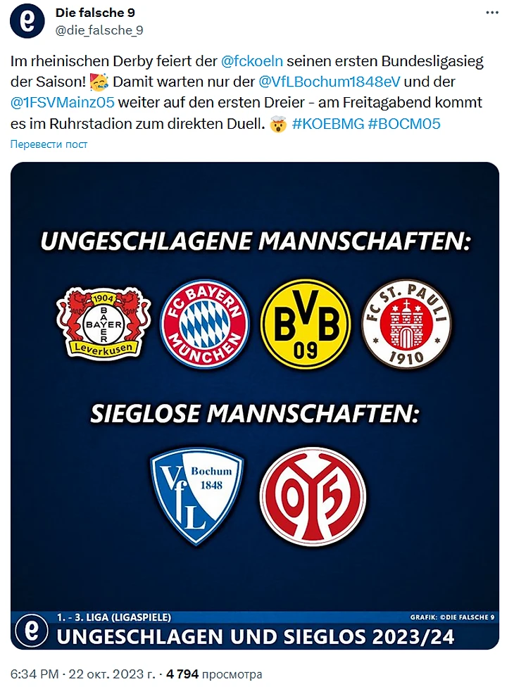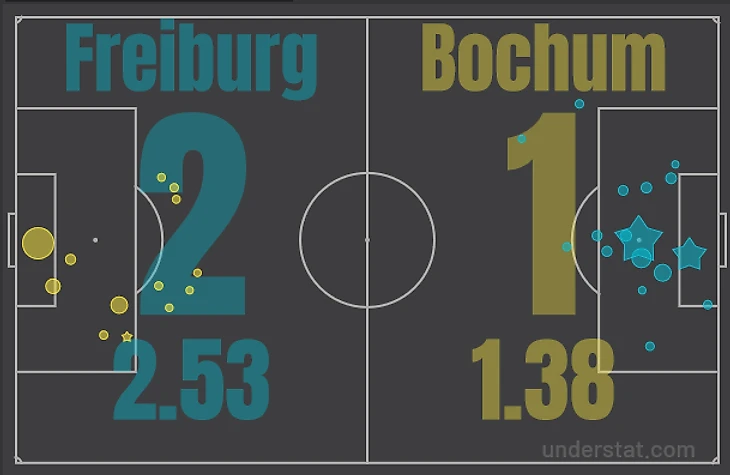 Неожиданно «Фрайбург» стремительно приближается к группе лидеров. На своем поле был переигран скромный «Бохум». Главным героем «Фрайбурга» традиционно стал Винченцо Грифо – на его счету 15-й реализованный пенальти за клуб (при 18 попытках) и классный ассист на Рицу Доана. Впрочем, всё могло обернуться совсем не так радужно для подопечных Кристиана Штрайха. В дебютные четверть часа Гонсалу Пасиенсия открыл счёт, а через три минуты мог добивать хозяев, но на последнем рубеже «Фрайбург» спас центрбек Маттиас Гинтер. С 0:2 добывать победу было бы куда труднее.