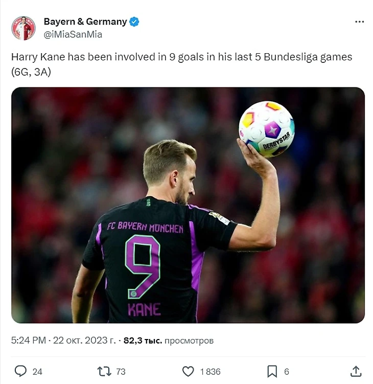 Кейн стал первым игроком, забившим девять голов в первых восьми матчах Бундеслиги за «Баварию» - предыдущий клубный рекорд принадлежал Луке Тони и Мирославу Клозе (по восемь голов).