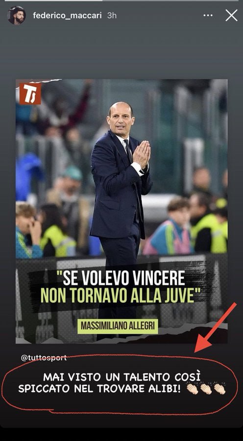 ● Есть предположение, что Лео высказывался через соцсети брата жены: в разгар разборок в инстаграме Федерико Маккари постоянно появлялись посты с критикой и высмеиванием Аллегри. Он публикует их до сих пор. «Я никогда не видел такого таланта оправдываться».