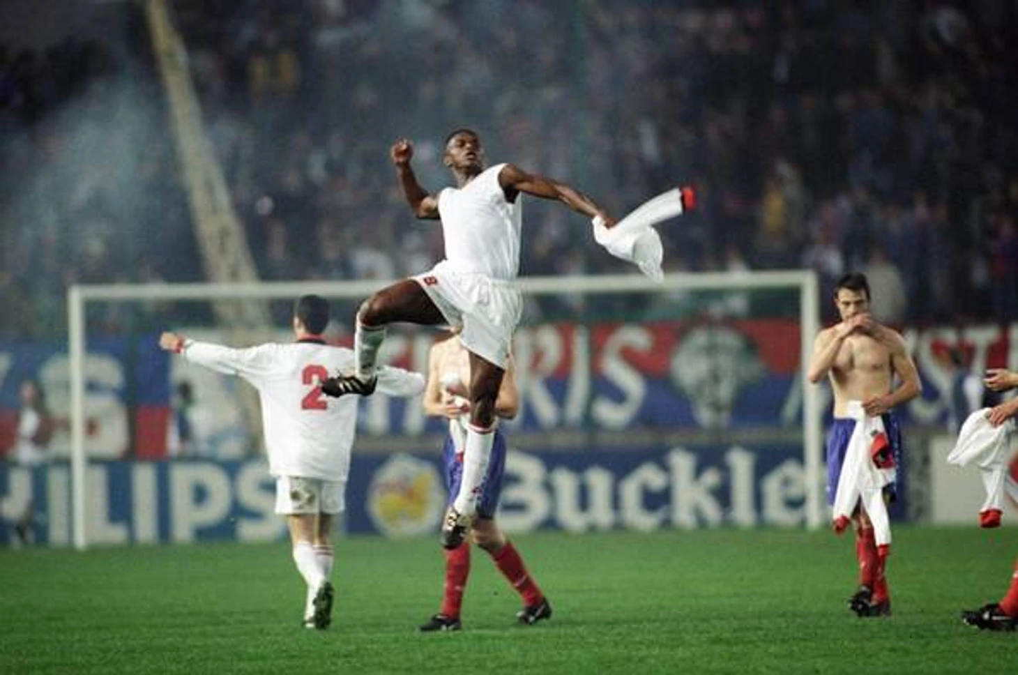 «Милан», действующий обладатель приза чемпионов, наоборот - тяжело прошёл групповой этап. Сложная победа в австрийском Зальцбурге в последнем туре принесла путевку в плей-офф. Напомню: с итальянского клуба были сняты очки, два матча группового этапа «Милан» провел в Триесте - домашний стадион был дисквалифицирован. Весной 1995-ого подопечных Фабио Капелло было не остановить. И в чемпионате, и в играх против «Бенфики» Дьявол неустанно атаковал и грамотно оборонялся, победив команду Эдилсона и Каниджи.