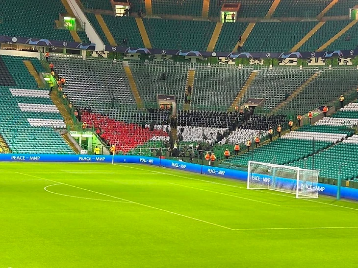 Напомним, группа фанатов «Селтика» Green Brigade, проводящая акции в поддержку Палестины с 2012 года, анонсировала акцию с флагами на матче Лиги чемпионов и призвала остальных болельщиков поддержать ее.