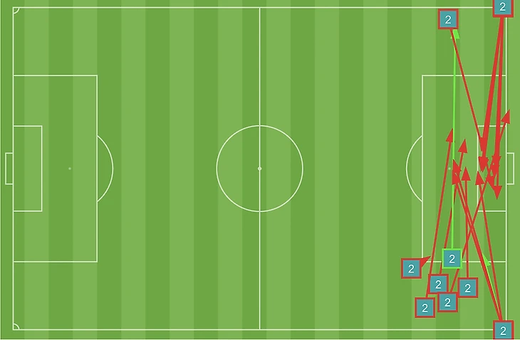 Правый защитник «Ньюкасла» Киран Триппьер – один из лучших исполнителей навесов в мире. Прямо сейчас идет третьим по созданным моментам в топ-лигах после кроссов в штрафную. По голевым передачам – вообще делит первое место. «Ньюкасл» пользуется лучшим качеством капитана либо на стандартах, либо через комбинации на правом краю.