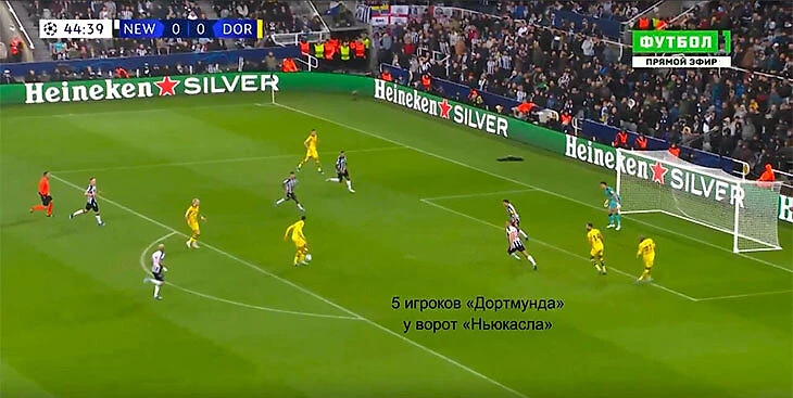 Апофеоз – результативная атака, принесшая «Боруссии» победу. Пять игроков «Дортмунда» внутри чужой штрафной. Хотя еще 10 секунд назад мяч был у «Ньюкасла».