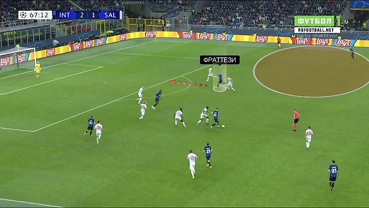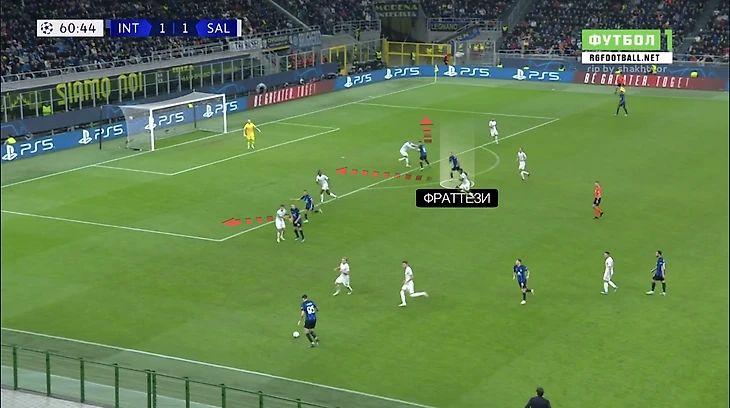 Против «Зальцбурга» (2:1) рывки Фраттези здорово помогли. Пользу можно разглядеть даже по хайлайтам: Давиде отдал голевой пас, заработал пенальти и был близок ко второму ассисту, но судьи зафиксировали миллиметровый офсайд. Все три эпизода – результат качественных открываний. Особенно понравился второй: нападающие увели защитников в разные стороны, а Фраттези нырнул в образовавшуюся дыру.