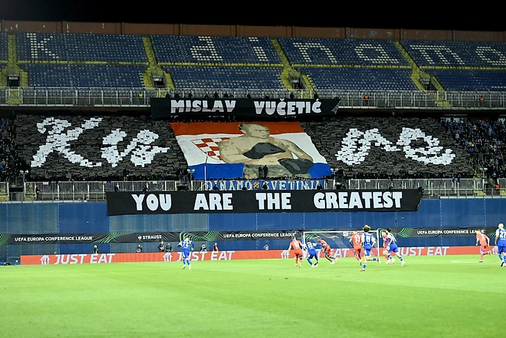 Группа С. Крайне интересным должен был стать матч загребского «Динамо» и чешской «Виктории» из города Пльзень, тем более что на неделе пришла радостная новость для хорватов: греческий суд не смог найти виновного в убийстве фаната «АЕКа» (напомню, что в августе в ночь перед матчем квалификации Лиги Чемпионов между «АЕКом» и «Динамо» на улицах Афин сошлись больше сотни хулиганов двух команд, в результате чего был зарезан один из греков. Позднее полиция арестовала 98 человек, 92 из которых были фанатами «Динамо»), поэтому пришлось отпустить всех остававшихся в тюрьме фанатов «Динамо» из группировки «Bad Blue Boys». Но параллельно с этим пришла и плохая новость – незадолго до матча против «Виктории» не стало лидера «Bad Blue Boys» Мислава Вучетича по кличке «Kure». Ему был 41 год, и его смерть никак не была связана с криминалом – он умер во сне. В последние годы он был тренером по кикбоксингу в загребском клубе «Питбуль». Именно ему «Bad Blue Boys» посвятили траурный перфоманс с лозунгом «Ты – величайший!» и изображением самого Вучетича на ринге.