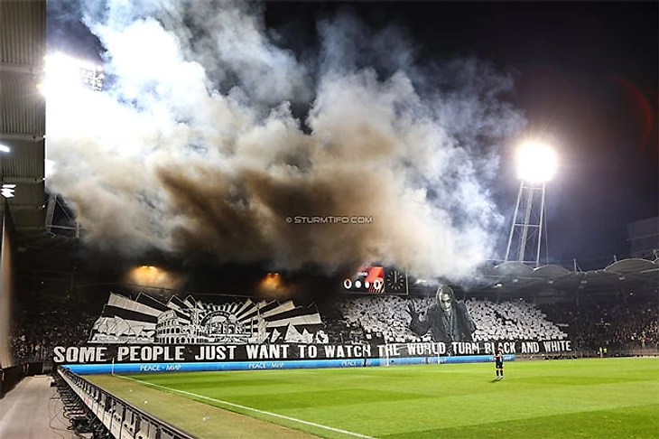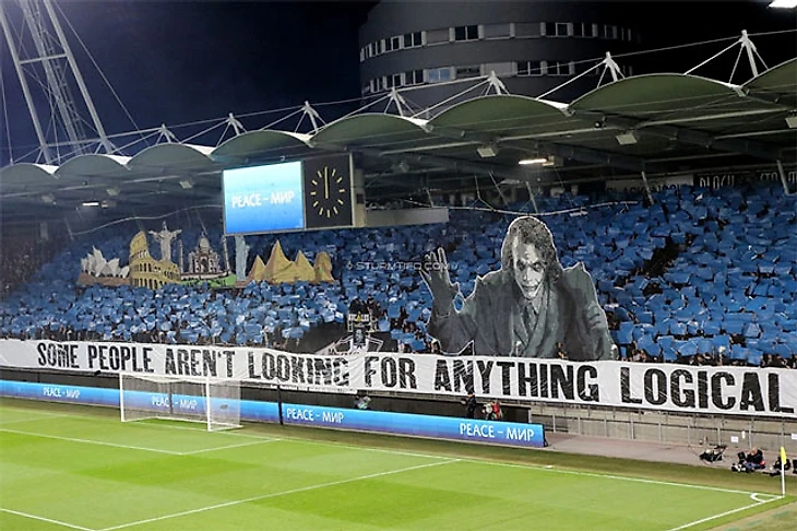 Перед матчем хулиганы «Штурма» дважды захотели взять реванш – сначала было небольшое пересечение на улицах Граца, а затем под стенами «UPC-Арены», но во второй раз до драки дело не дошло, так как австрийские полицейские жёстко прогнали дубинками горе-акционеров. На самой же игре отметились уже ультрас «Штурма», которые презентовали двойной перфоманс с цитатой Джокера: «Некоторые люди не ищут логику... Некоторые люди просто хотят увидеть, как мир становится черно-белым».