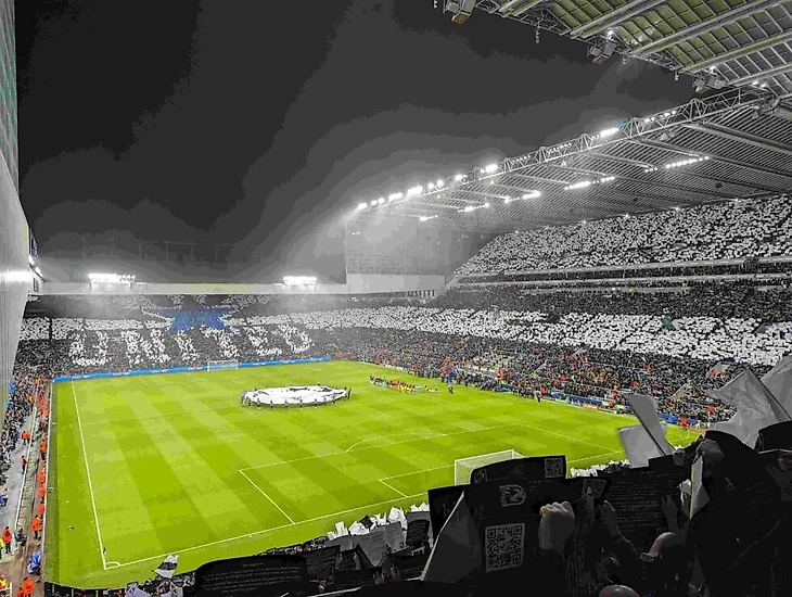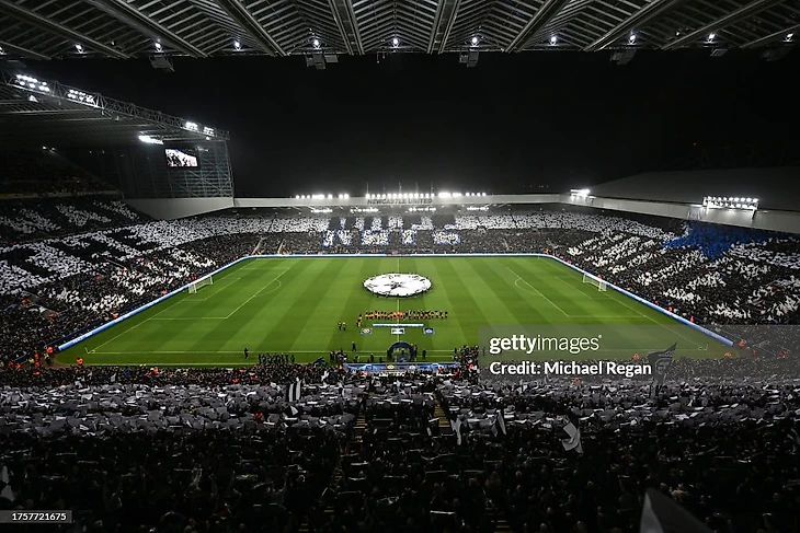 В другой паре этой группы на «Сент-Джеймс Парк» встречались «Ньюкасл» и дортмундская «Боруссия». Английские болельщики снова воспользовались финансовой помощью клуба и сделали банальный перфоманс на весь стадион с черными и белыми плашками, выложив фразу «Здравствуйте, ребята» на одной заворотке, слово «Юнайтед» с синей звездой на другой заворотке, и клубной аббревиатурой «NUFC» на центре.