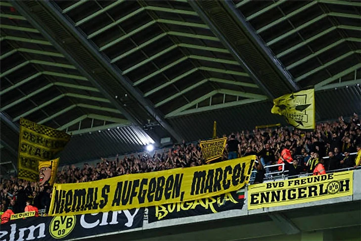 Ещё одним важным событием на этой игре стало очередное появление баннера «Никогда не сдавайся, Марсель!», посвященный фанату дортмундского клуба, который болен раком. В марте ему поставили очередной диагноз: в его голове в третий раз образовалась опухоль. Перспективы, к сожалению, у парня печальные и врачи говорят о том, что Марселю осталось не так долго. Тем не менее, к борьбе его призывают и друзья-фанаты, и игроки «Боруссии», которые выходили на поле в футболках с аналогичным призывом.