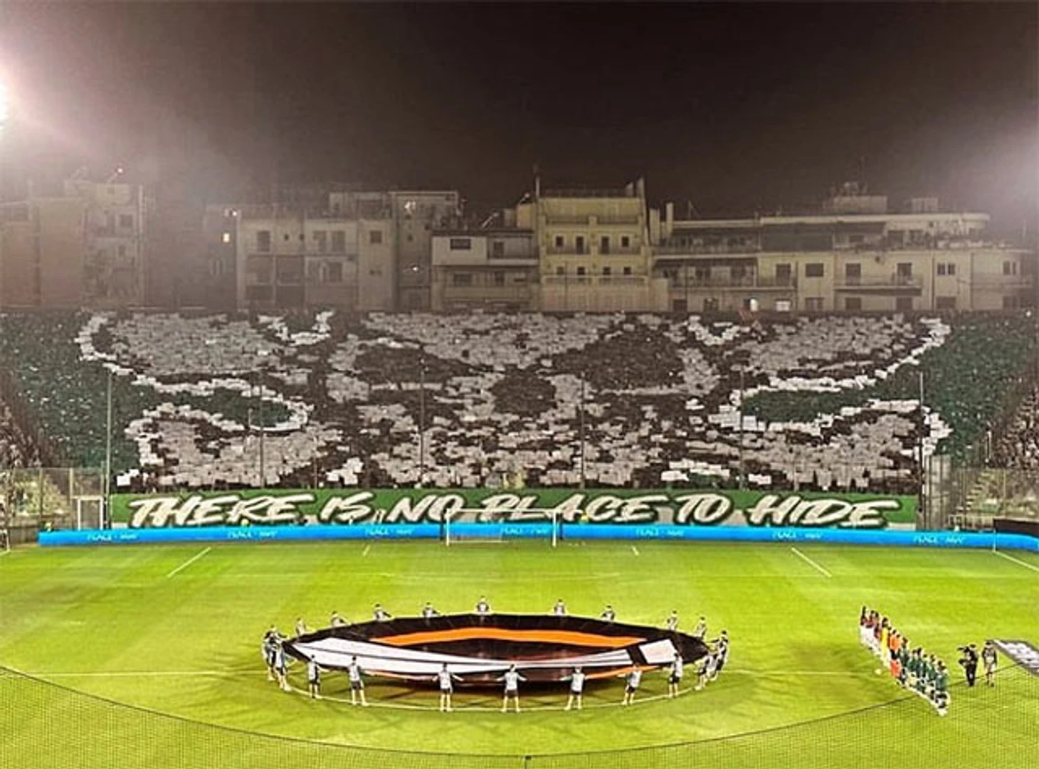 Группа F в этом туре оказалась с укороченной программой, так как матч «Маккаби» (Хайфа)-«Вильярреал» был отменён по всем понятным причинам. Поэтому всё внимание тут было приковано к поединку «Панатинайкоса» и «Ренна». Ультрас греческого клуба реализовали сложных плашечный перф «Тут негде спрятаться» с черепом и костями на фоне этого лозунга. Только вот французских футболистов это сильно не испугало – выездная победа 2:1 позволила «Ренну» выйти на 1-ю строчку в турнирной таблице.