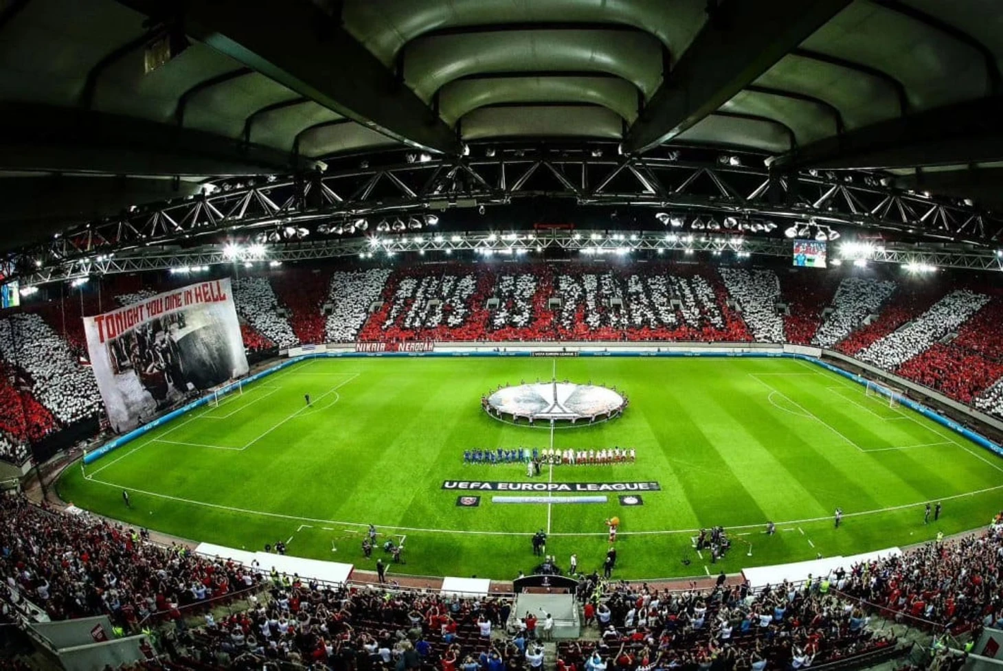 В группе А фанаты греческого «Олимпиакоса» свои перфомансом на весь стадион дали понять игрокам красно-белого клуба, что отступать уже некуда. Даже несмотря на то, что их соперником был грозный «Вест Хэм», который является действующим победителем Лиги Конференций. Греки вдохновились фильмом «300 спартанцев», переделав фразу из фильма на свой лад в «Это – Пиреи!».