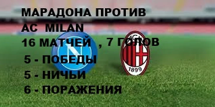 Всего в Италии Марадона сыграл в чемпионате и Кубке против «Милана» 16 встреч , их итог :