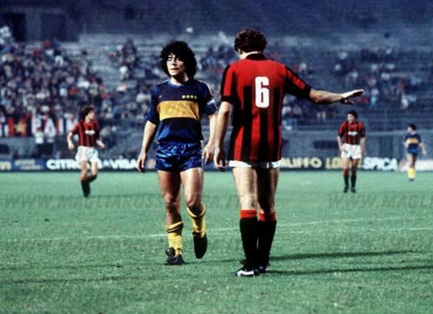 Впервые тифози «россонери» на «Сан-Сиро» познакомились с Марадоной осенью 1981 года. В товарищеском матче хозяева были побеждены «Бока Хуниорс». Команда тренера Радиче почувствовала на себе мощь атакующего таланта Диего Армандо. Лишь рикошет от защитника миланцев Баттистини не дал арбитру записать гол на счет Марадоны. 1:2 .