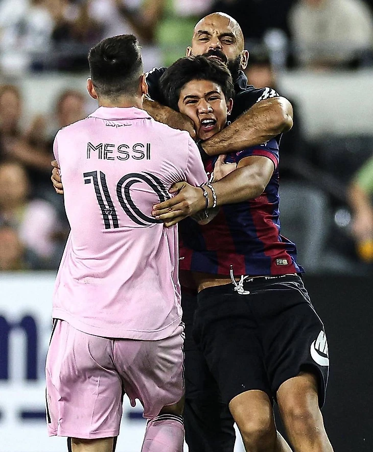 Яссина Чуэко уже знает любой футбольный болельщик - охранник регулярно появляется на поле даже во время матчей, оберегая Месси от чрезмерного внимания выбегающих на поле фанатов.