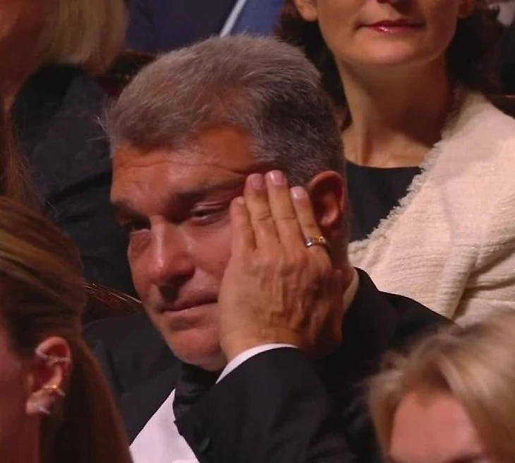 Из зала за Айтаной наблюдал гордый Лапорта. Когда футболистка со сцены благодарила «Барселону», Жоан не смог сдержать слез.
