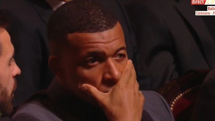 Выражение лица Мбаппе отражает эмоции, которые испытывает француз от церемонии к церемонии.